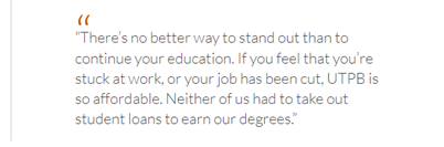 In 2020, UT Permian Basin worked with Stamats to create a roundup story about in-demand careers in growing industries in West Texas. The story opens with an alumni story, in which a student discusses her ROI.