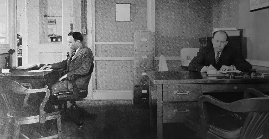 Herbert Stamats and Frank French in their first offices, 1924.