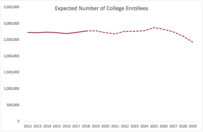 The findings will make a lot of higher ed professionals nervous. And, for some, rightly so: The total number of traditional-aged students enrolling in college is expected to decline in the coming years with more dramatic declines occurring in the late 2020s.