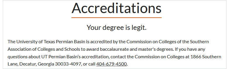 Accrediting bodies provide the specific wording they require every school or program to use when claiming their accreditation status. These statements typically include the full name of the accrediting body, their full contact information, and a link to their site, for example: