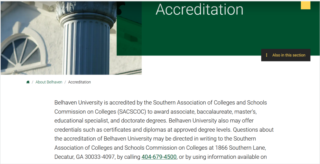 Most schools choose to publish their institutional accreditation statement within their “About Us” section: