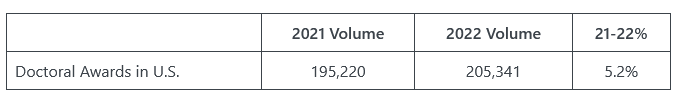Student demand for doctoral degrees continues to grow. The most recent data posts a year-on-year growth rate of 5.2% across all disciplines, professional and research/scholarship degrees combined. Public, private, and online universities continue to adjust their doctoral offerings to meet student demand. In specific careers, students want to increase their skills for career promotions and salary increases by adding a doctoral degree.