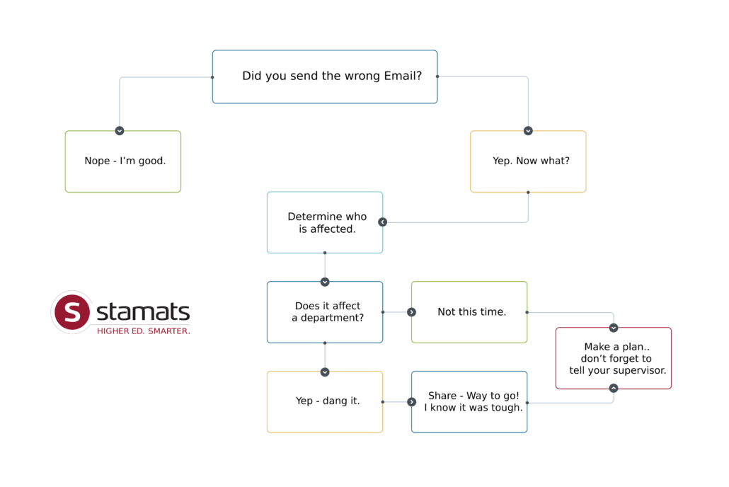 When an unfortunate send occurs, you must tell the departments affected, since incoming messages about the mistake will undoubtedly start right away. In this case, it was the registrar’s office that would see the outcomes.