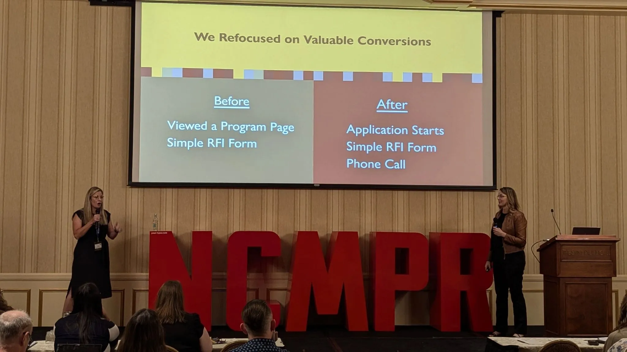 - Pops of color and photos for energy and impact